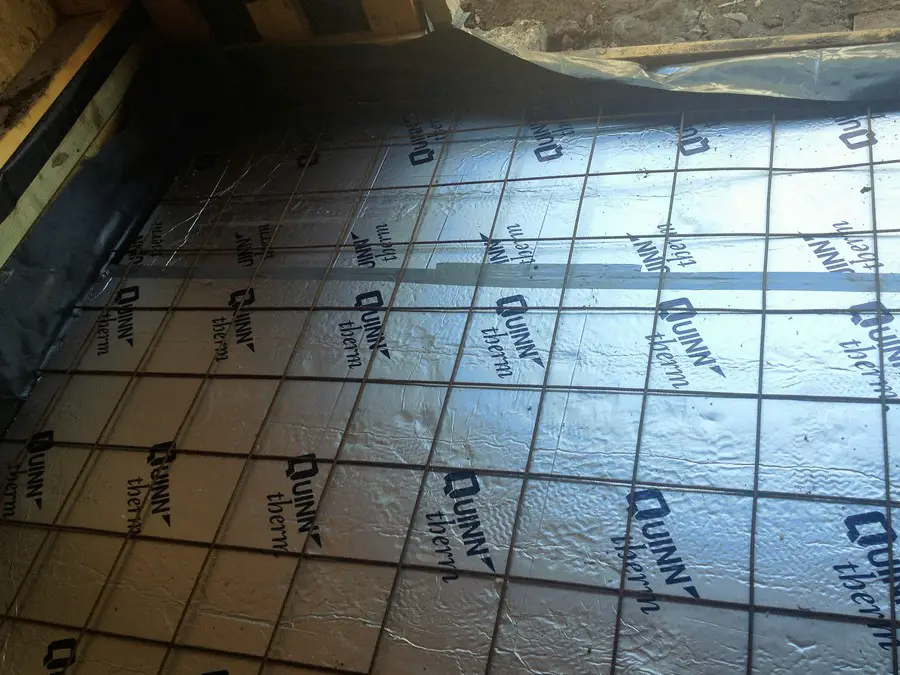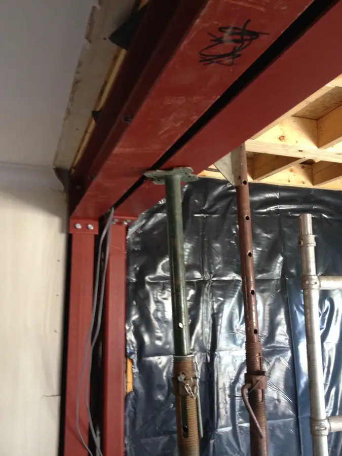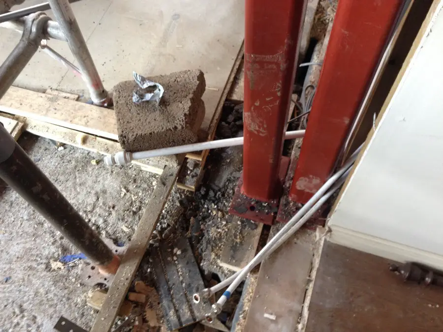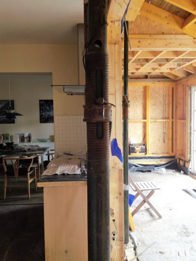 The manhole is visible in its new location outside the extension: